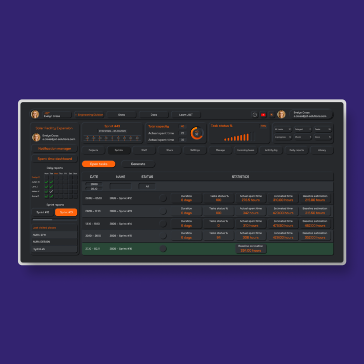 J.O.T APP Sprint Management organizes weekly work into clear goals, structured tasks, and predictable team progress
